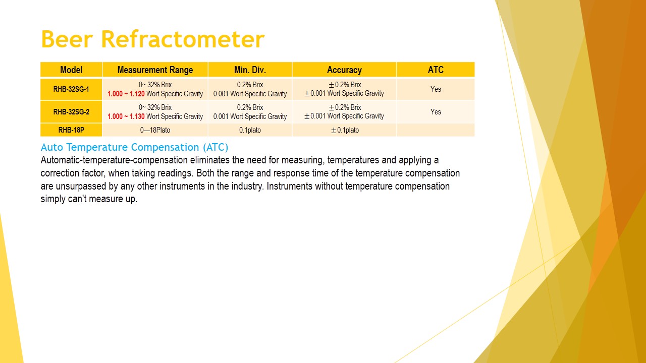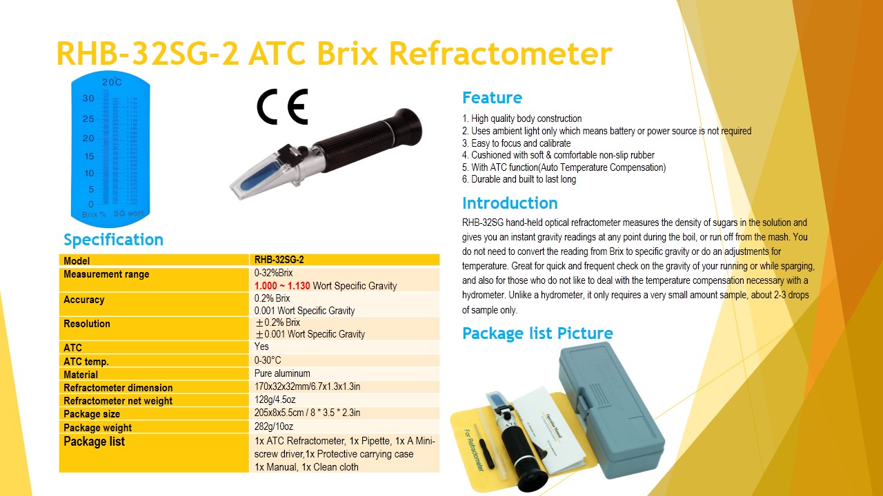 RHB-32SG ATC Beer 0-32% Brix WortSG:1.000-1.130 optical refractometer
