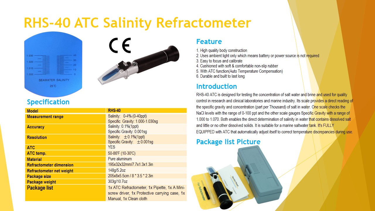 RHS-40 ATC salinity 0-4% (0-40 ppt) 1.000-1.030SG optical refractometer