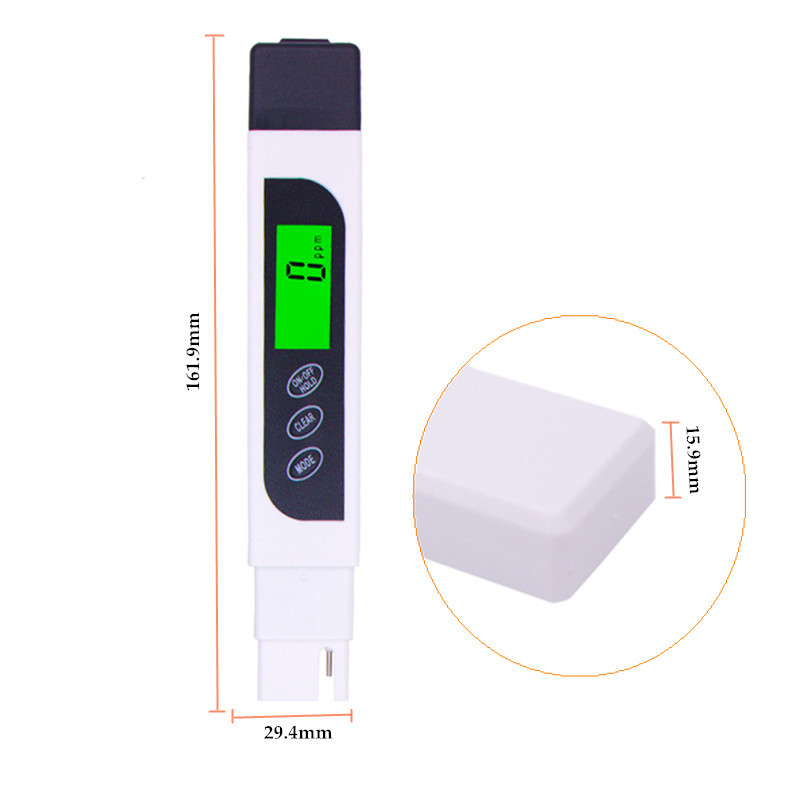 The TDS water quality measuring pen is used to test the TDS value of water and the conductivity of water to judge the purity of water. It also has the function of testing water temperature and ambient temperature. The products can be widely used in water treatment industry, drinking water industry, family, personal home travel, field work, etc. as a testing tool for drinking water quality.